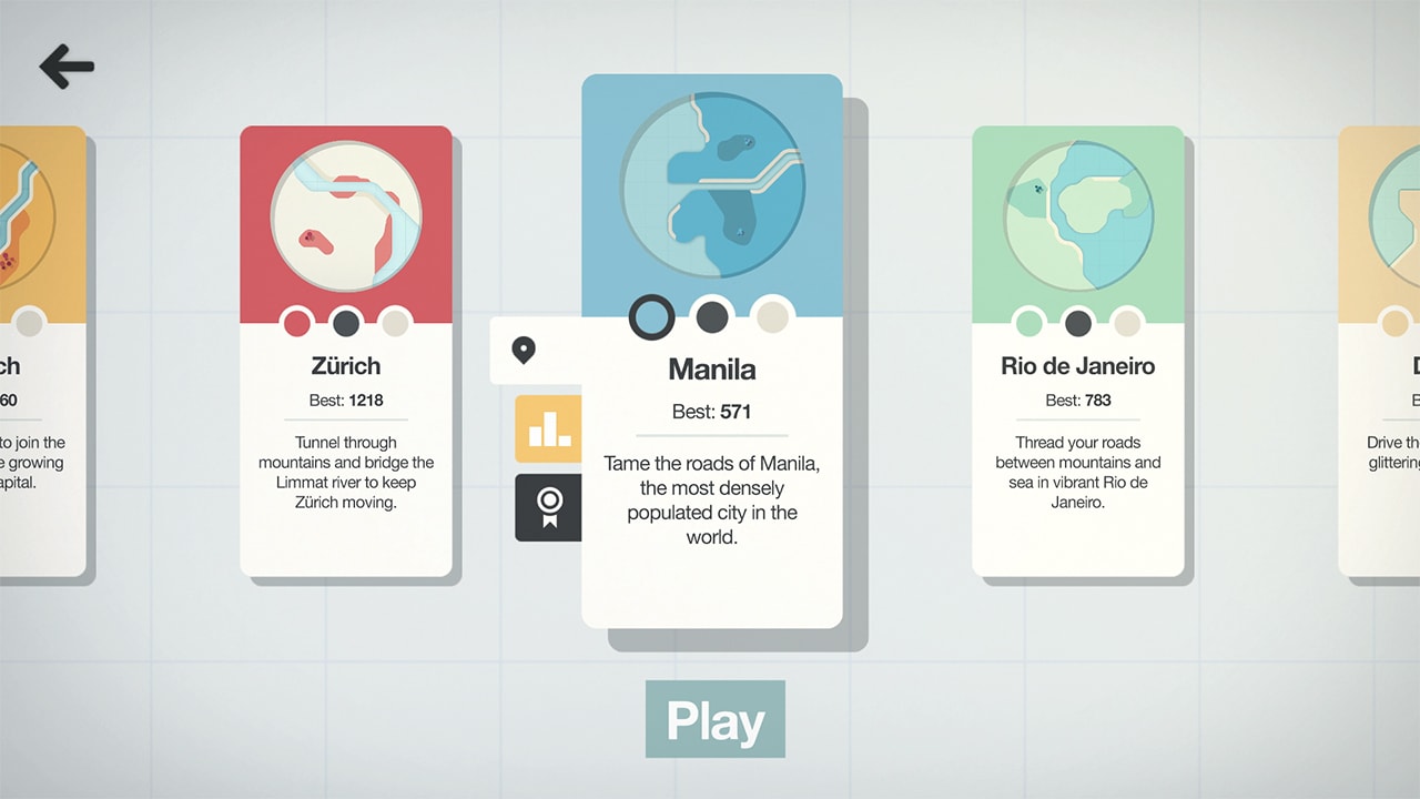 From the makers of Mini Metro, Mini Motorways is a game about drawing the roads that drive a growing city. Build a road network, one road at a time, to create a bustling metropolis. Redesign your city to keep the traffic flowing, and carefully manage upgrades to meet the changing demands. How long can you keep the cities of the world moving?