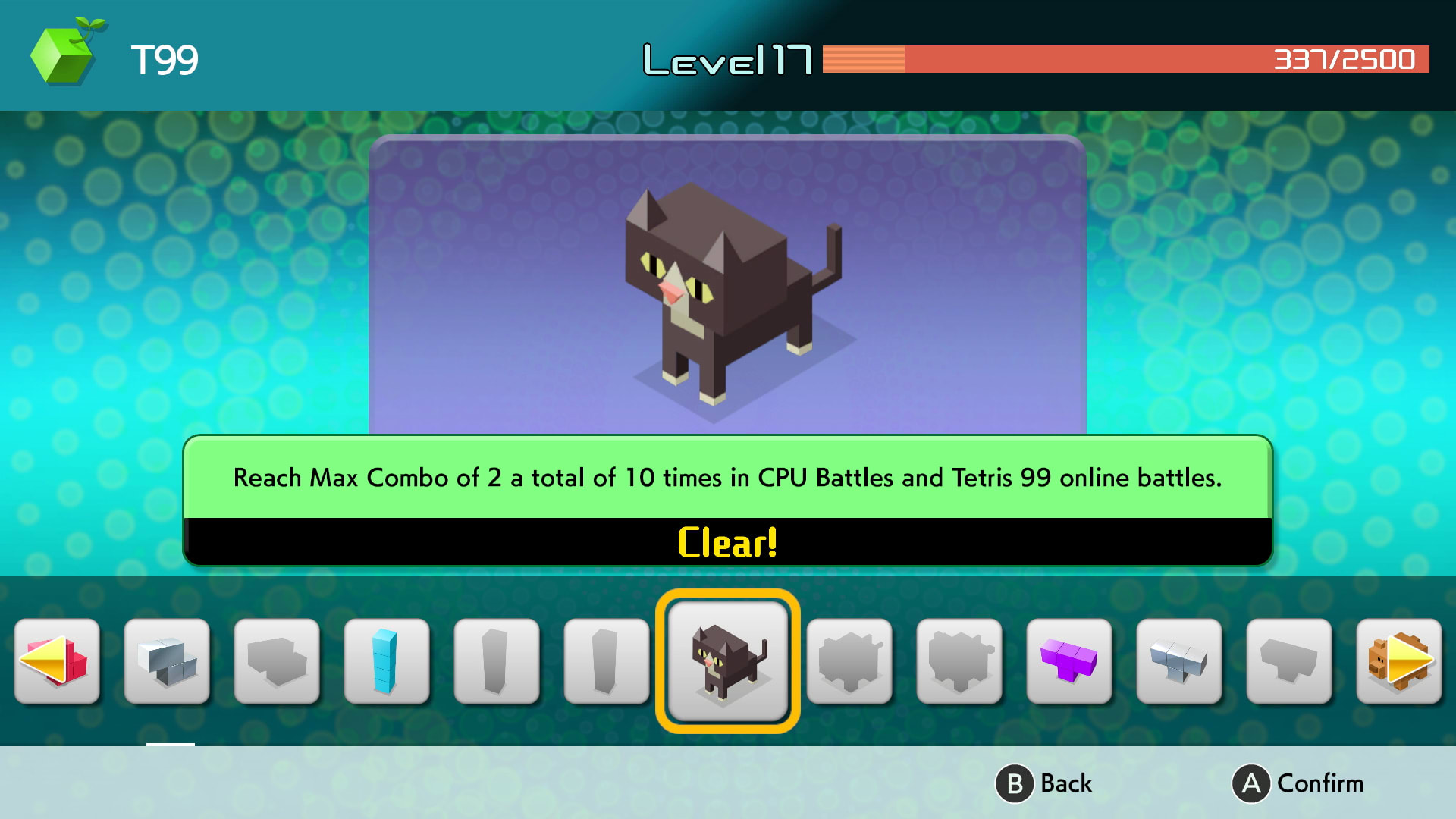 Tetris ® & © 1985~2020 Tetris Holding. Tetris logos, Tetris theme song and Tetriminos are trademarks of Tetris Holding. The Tetris trade dress is owned by Tetris Holding. Licensed to The Tetris Company. Tetris Game Design by Alexey Pajitnov. Tetris Logo Design by Roger Dean. All Rights Reserved. Sub-licensed to Nintendo. Certain new content developed by Nintendo, and any characters, sounds and video games originally owned by Nintendo: © 2019 Nintendo. Nintendo Switch is a trademark of Nintendo. © 2020 Nintendo.